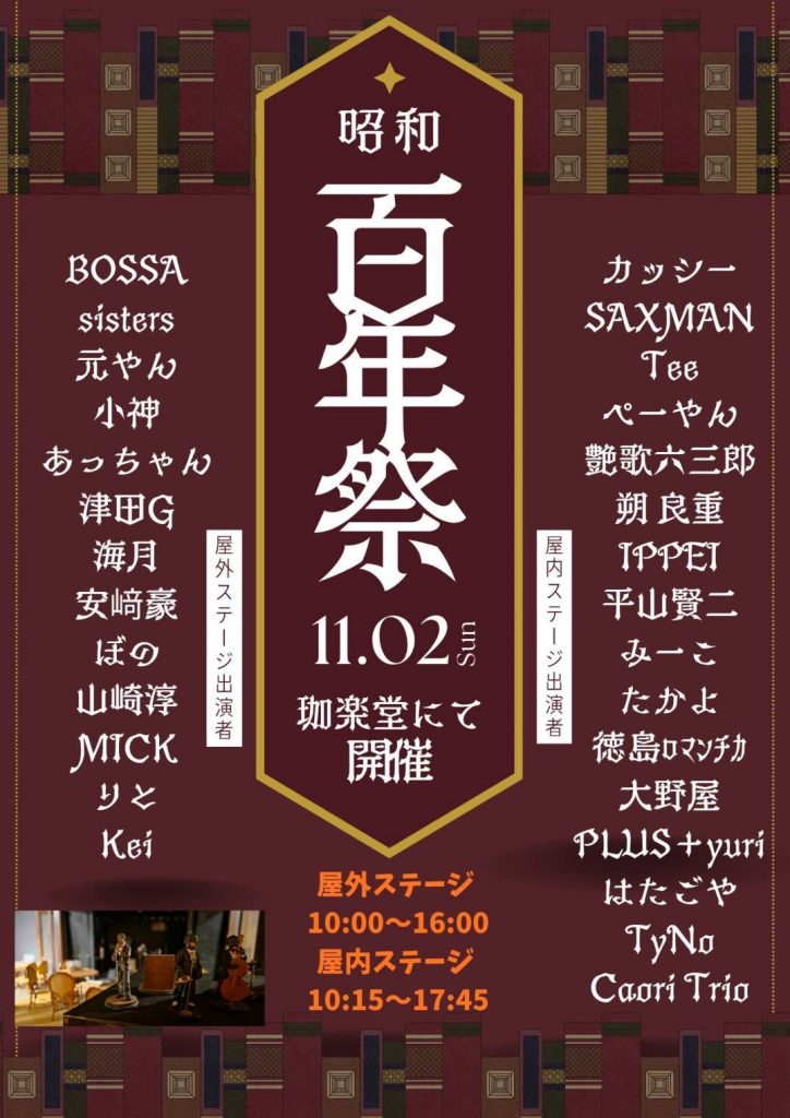 2025.11.2(日)昭和100年祭 珈楽堂 【Mickソロ】 by O.W.L. on 2025年10月28日 with コメントはまだありません 11月2日(日)昭和100年祭珈楽堂さんで昭和歌謡を弾き語ってきます🎶Mickの出番は14:30〜ギリギリ昭和の曲ばかりやります〜✨
